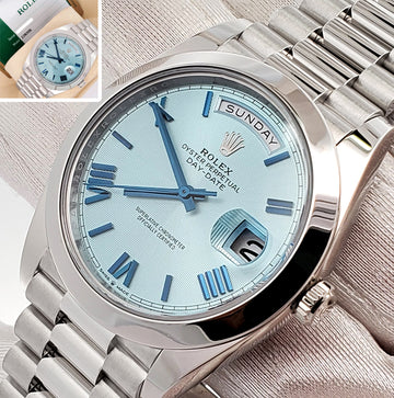 2020 Rolex President Day-Date Ice Blue Roman Dial Platinum 40mm Watch 228206 Box Papers SKU: ES38008542...