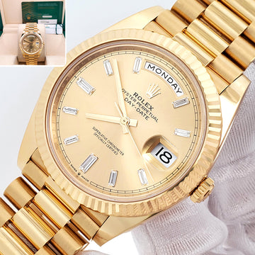 Rolex Day-Date 40 President Factory Champagne Baguette Diamond Dial Yellow Gold Men's Watch 228238 Box/Papers/Tag....