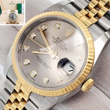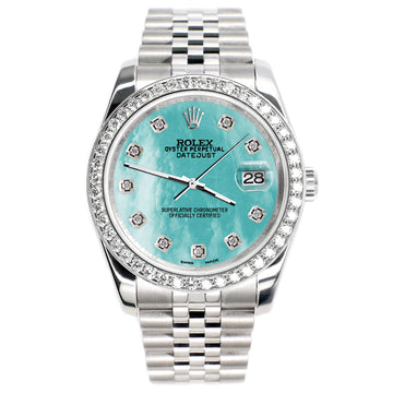 Rolex Datejust 116200 36mm 2.7ct Diamond Bezel/Silver Tuxedo Dial Steel Oyster Watch SKU: ES130080A36 Excellent, pristine...