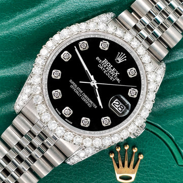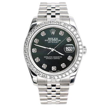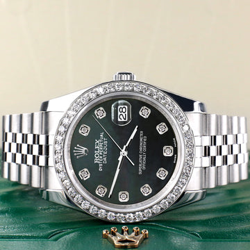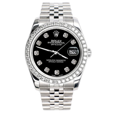 Rolex Datejust 116200 36mm 2.7ct Diamond Bezel/Black Roman Dial Steel Oyster Watch SKU: ES130080A33 Excellent, pristine...