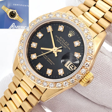 Rolex President Datejust Factory Black Diamond Dial Yellow Gold 26mm Watch, Ref 69178. Let’s make...