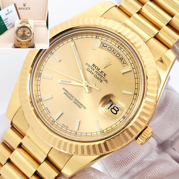 Rolex President Day-Date II 41mm Champagne Index Yellow Gold Watch, Ref 218238. Let’s make a...