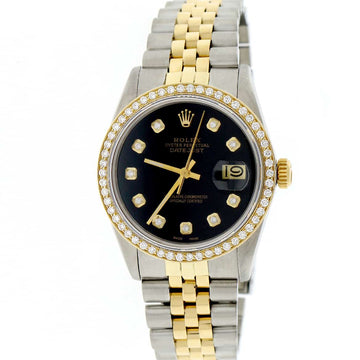 Factory Rolex Datejust 2-Tone Yellow Gold/Steel 31mm Black Dial with Index Hour Markers in excellent condition. SKU...