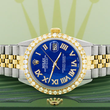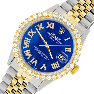 Factory Rolex Datejust 2-Tone Yellow Gold/Steel 36mm Champagne Dial with Roman Numerals in excellent condition. SKU ESD313_36...