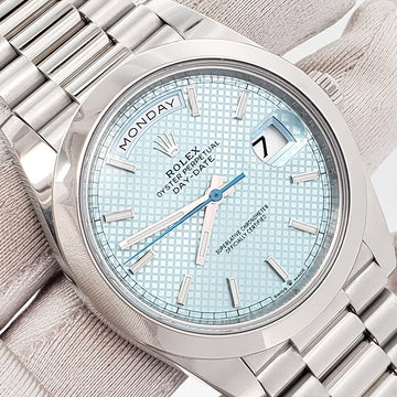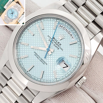 2020 Rolex President Day-Date Ice Blue Quadrant Motif Roman Dial Platinum 40mm Watch, Ref 228206....