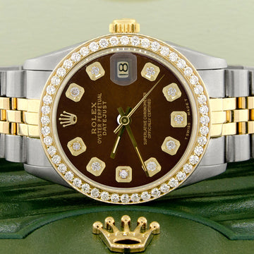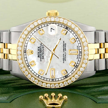 Rolex Datejust Midsize 2-tone 31mm 0.95ct custom diamond bezel (diamonds are not set by Rolex) yellow gold and...