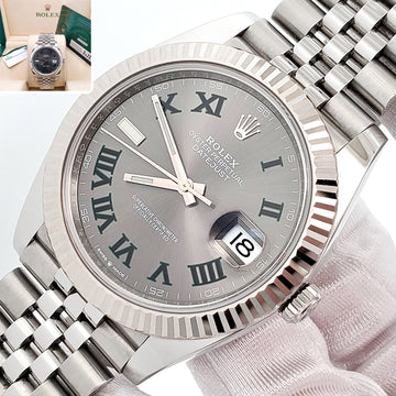 Rolex Datejust 41 Wimbledon Slate Roman White Gold Fluted Bezel Steel Watch, Ref 126334. Striking sophistication...
