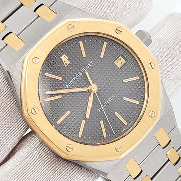 Audemars Piguet Royal Oak Grey Tapisserie Steel Yellow Gold 36mm Automatic Watch, Ref 14700SA. Sporting...