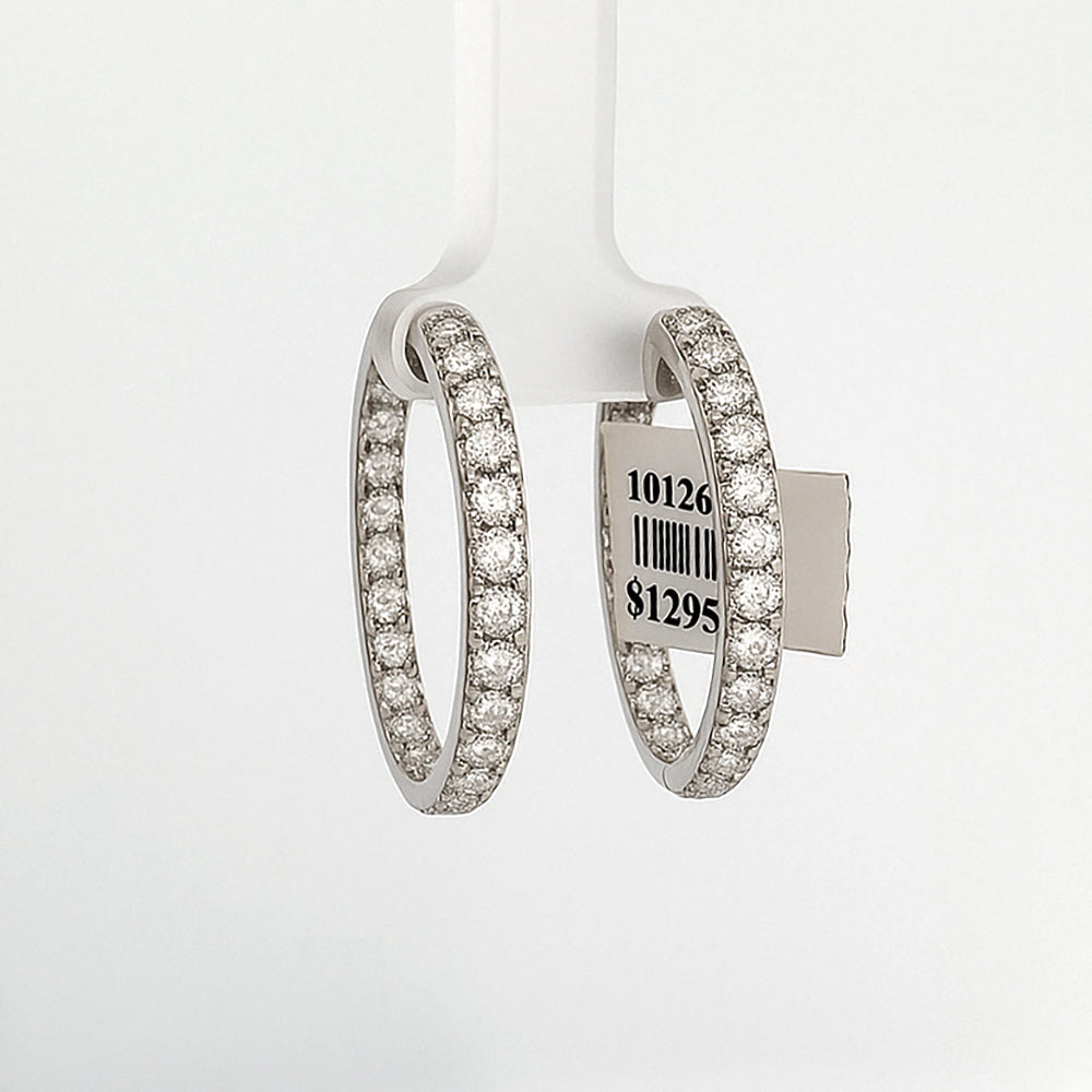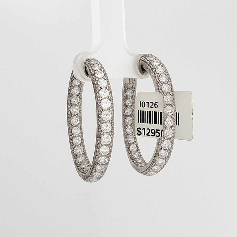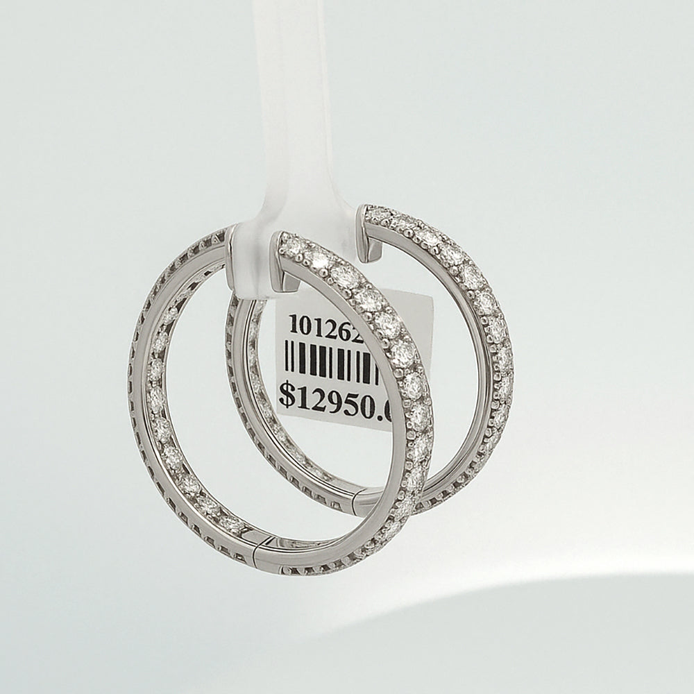18k White Gold Diamond Hoop Earrings 3.52ct Natural Diamonds | Inside-Out Sparkle Elegance