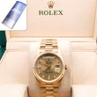 Radiant prestige Rolex Day-Date 36mm 18238 in solid yellow gold with factory diamond dial and double-quickset movement. A timeless icon of luxury.