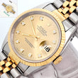 1995 Rolex Datejust Factory Champagne Diamond Dial 36mm 16233 Yellow Gold/Steel Watch Papers