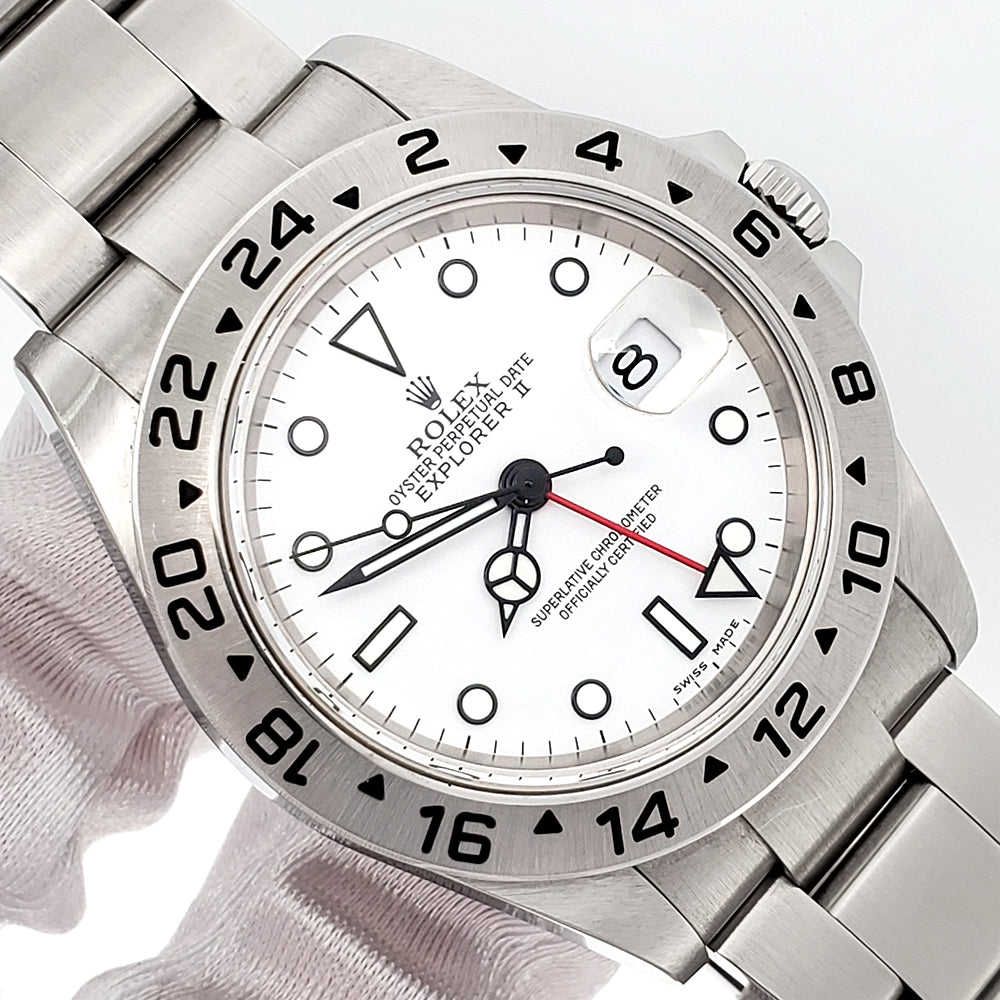 2005 Unpolished Rolex Explorer II Polar White Steel Oyster 40mm Watch 16570 Box Papers