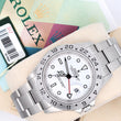 Adventure refined — Rolex Explorer II 40mm with Polar White dial in steel. Complete with box, papers, and serial tag.