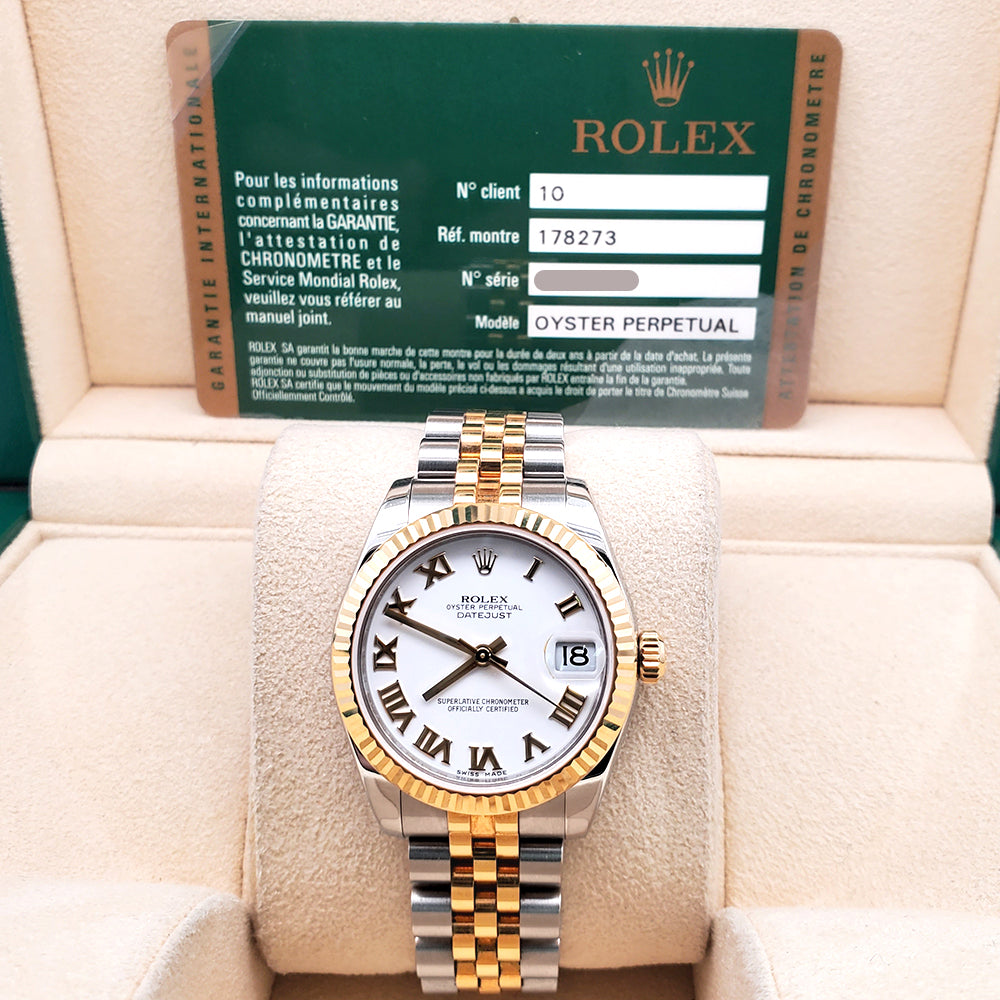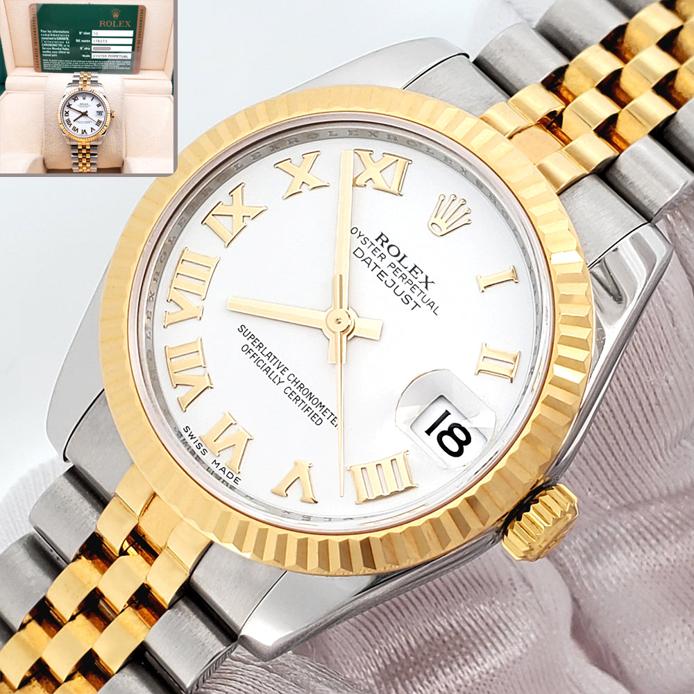 2011 Rolex Datejust White Roman 2-tone Yellow Gold/Steel Jubilee 31mm Watch, Ref 178273.