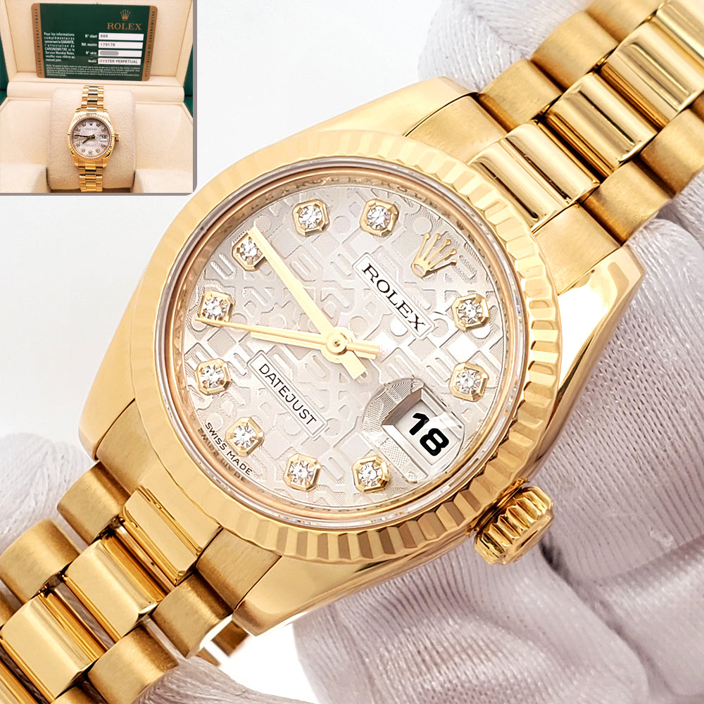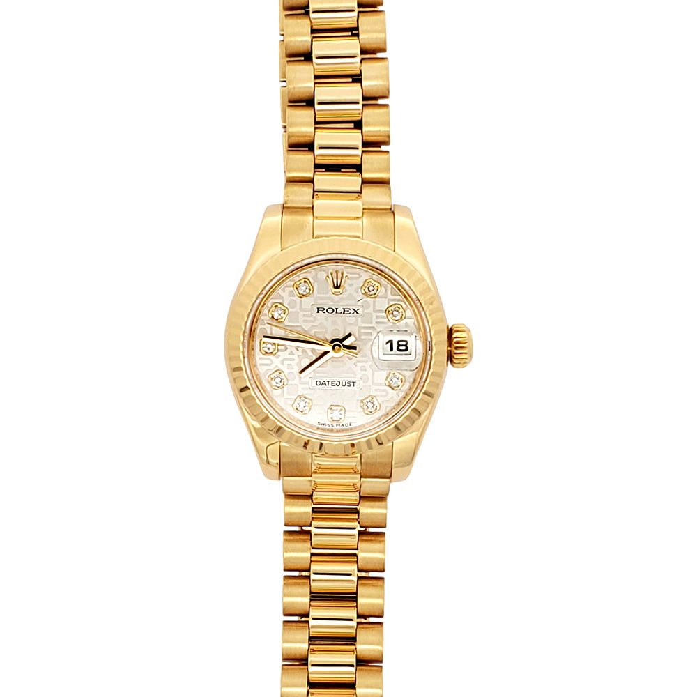 Rolex President Datejust Factory Jubilee Diamond Dial Yellow Gold 26mm Ladies Watch, Ref 179178.