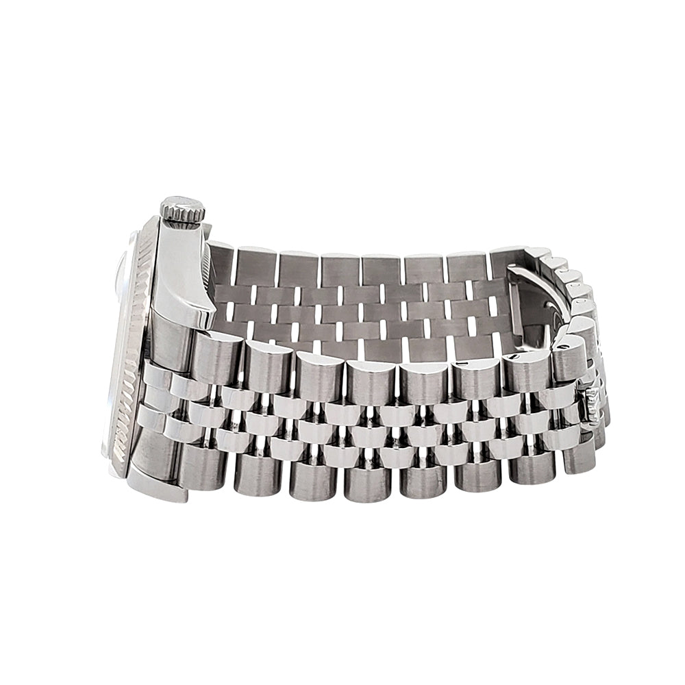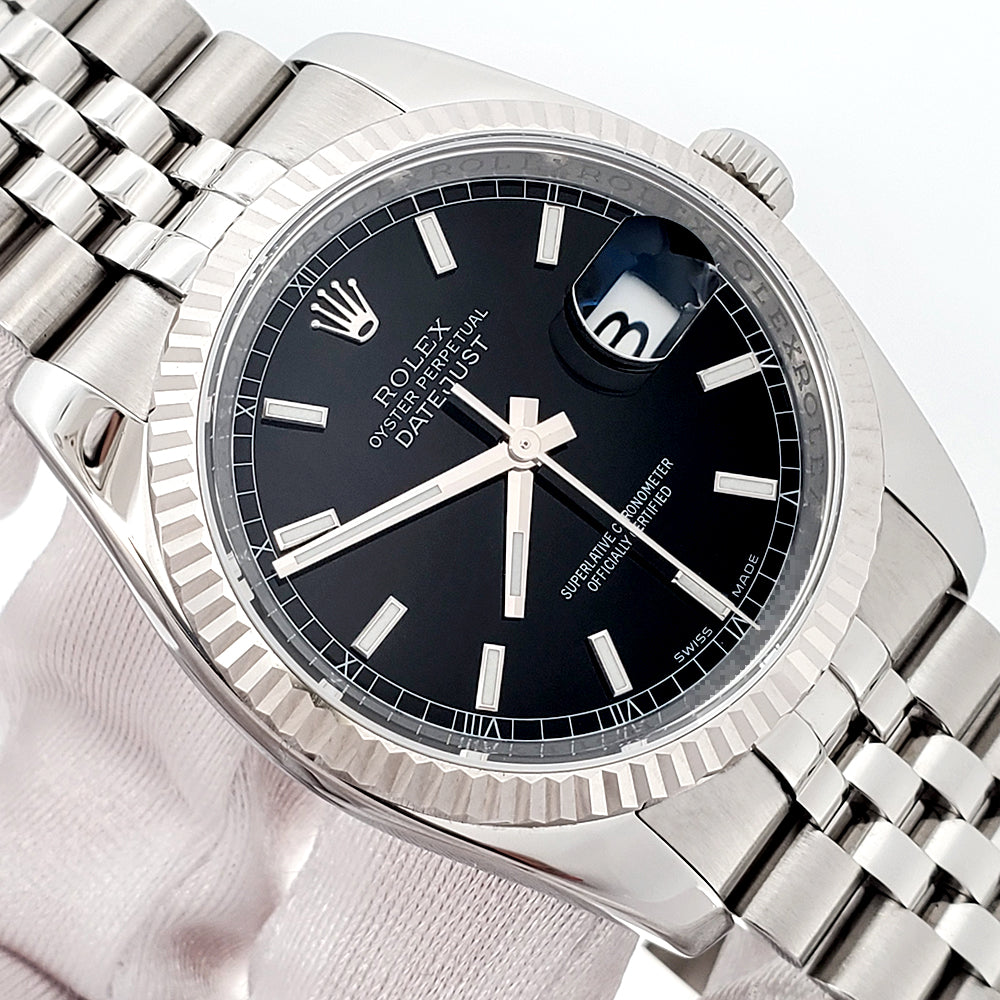 Rolex Datejust 36mm Black Index Dial White Gold Fluted Bezel Steel Jubilee Watch, Ref 116234.