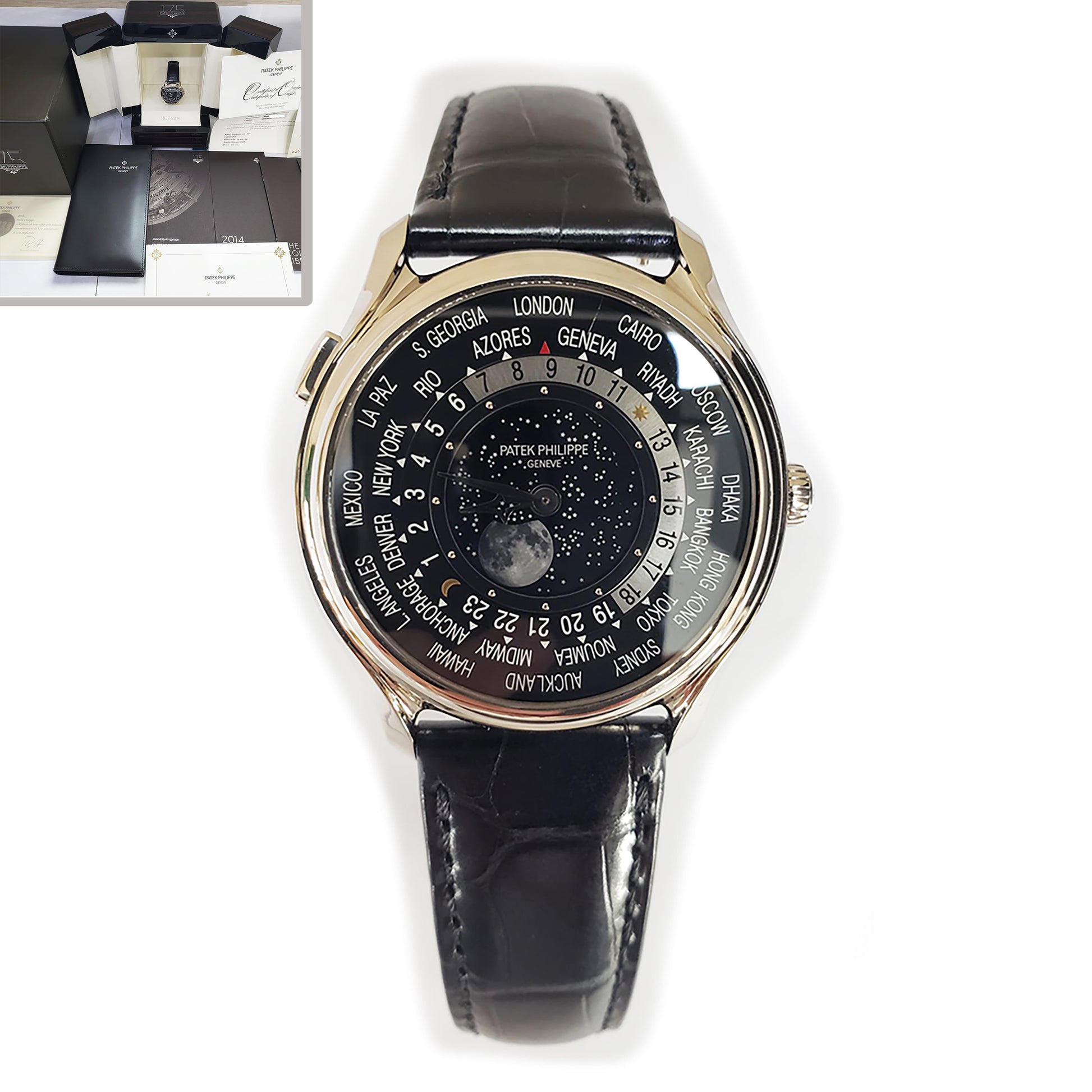 2015 Patek Philippe World Time White Gold Black Dial 175th Anniversary 5575G-001 39.5mm watch Box Papers