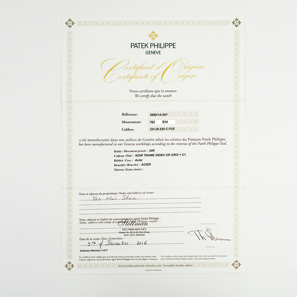 2016 Patek Philippe Nautilus Flyback Travel Time Chronograph Stainless Steel 5990/1A-001 40mm watch Box Papers