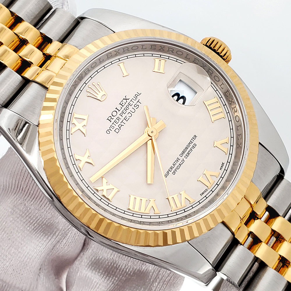 Rolex Datejust 36mm Cream Pyramid Roman 2-Tone Yellow Gold/Steel Jubilee Watch, Ref 116233.