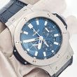 Sporty sophistication — 2019 Hublot Big Bang 44mm Chronograph with striking blue dial. Steel case, comes with papers.