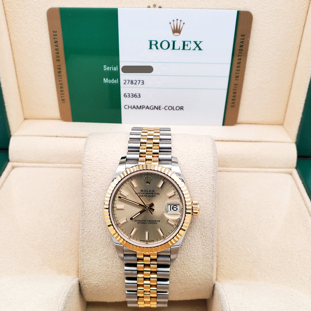 2019 Rolex Datejust Champagne Index Dial 31mm Yellow Gold/Steel Watch 278273 Box Papers