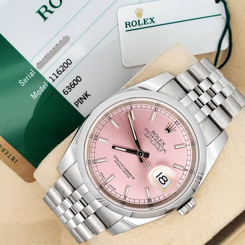 Rolex Datejust 36mm Pink Index Steel Jubilee Watch, Ref 116200.