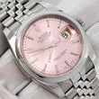 Rolex Datejust 36mm with a stunning pink index dial, steel Jubilee bracelet, and smooth bezel. Complete with box and papers—timeless elegance meets everyday luxury. A standout piece that turns heads effortlessly.