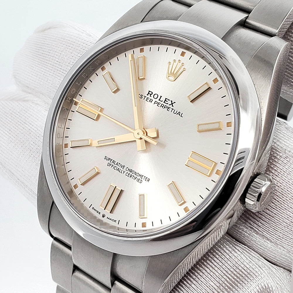 Rolex Oyster Perpetual 41mm Silver Index Dial Steel Watch, Ref 124300.