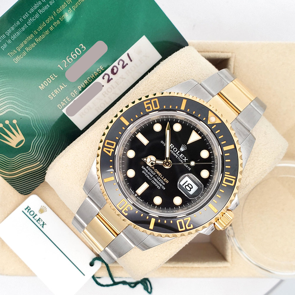 2021 Rolex Sea-Dweller 43mm 126603 Black Ceramic Yellow Gold/Steel Watch Box/Papers/Tag