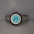 Bold and refreshing 2022 Breitling Superocean 44mm A17376 with striking turquoise dial in stainless steel. Papers included.