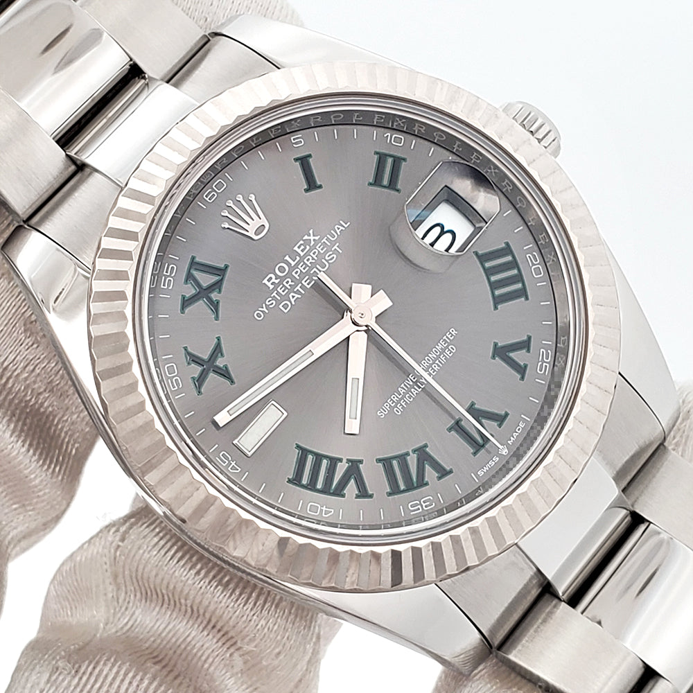 Rolex Datejust 41 Wimbledon Slate Roman White Gold Fluted Bezel Steel Watch, Ref 126334.