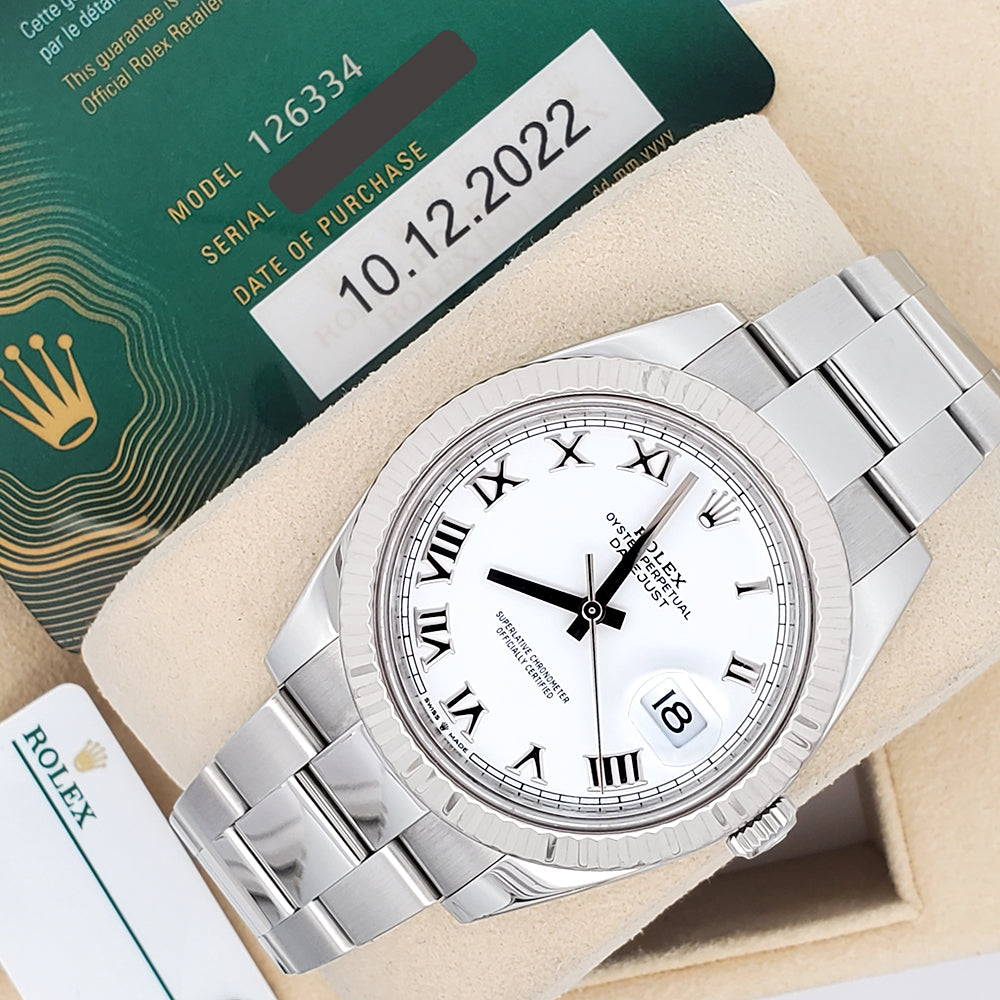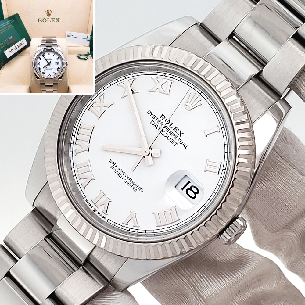 2022 Rolex Datejust 41 White Gold Fluted Bezel White Roman Dial Watch 126334 Box/Papers/Tag