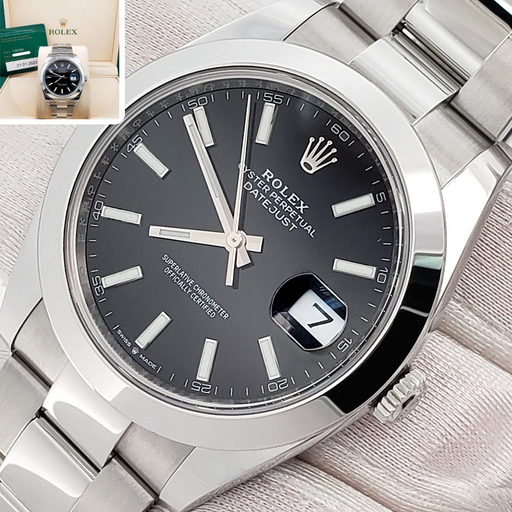 2023 Rolex Datejust 41mm Black Index Dial Steel Oyster Watch 126300 Box Papers