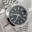 Sleek and refined, this 2023 Rolex Datejust 41mm features a bold black index dial paired with a classic steel Oyster bracelet. A perfect blend of modern elegance and legendary precision, complete with box and papers for the discerning collector.