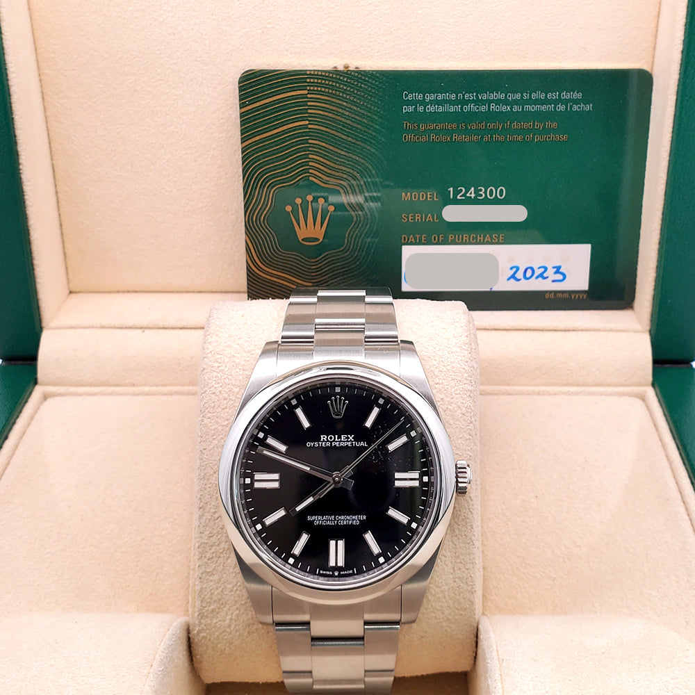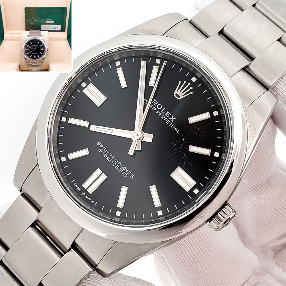 2023 Rolex Oyster Perpetual 41mm Black Index Dial Steel Watch, Ref 124300.