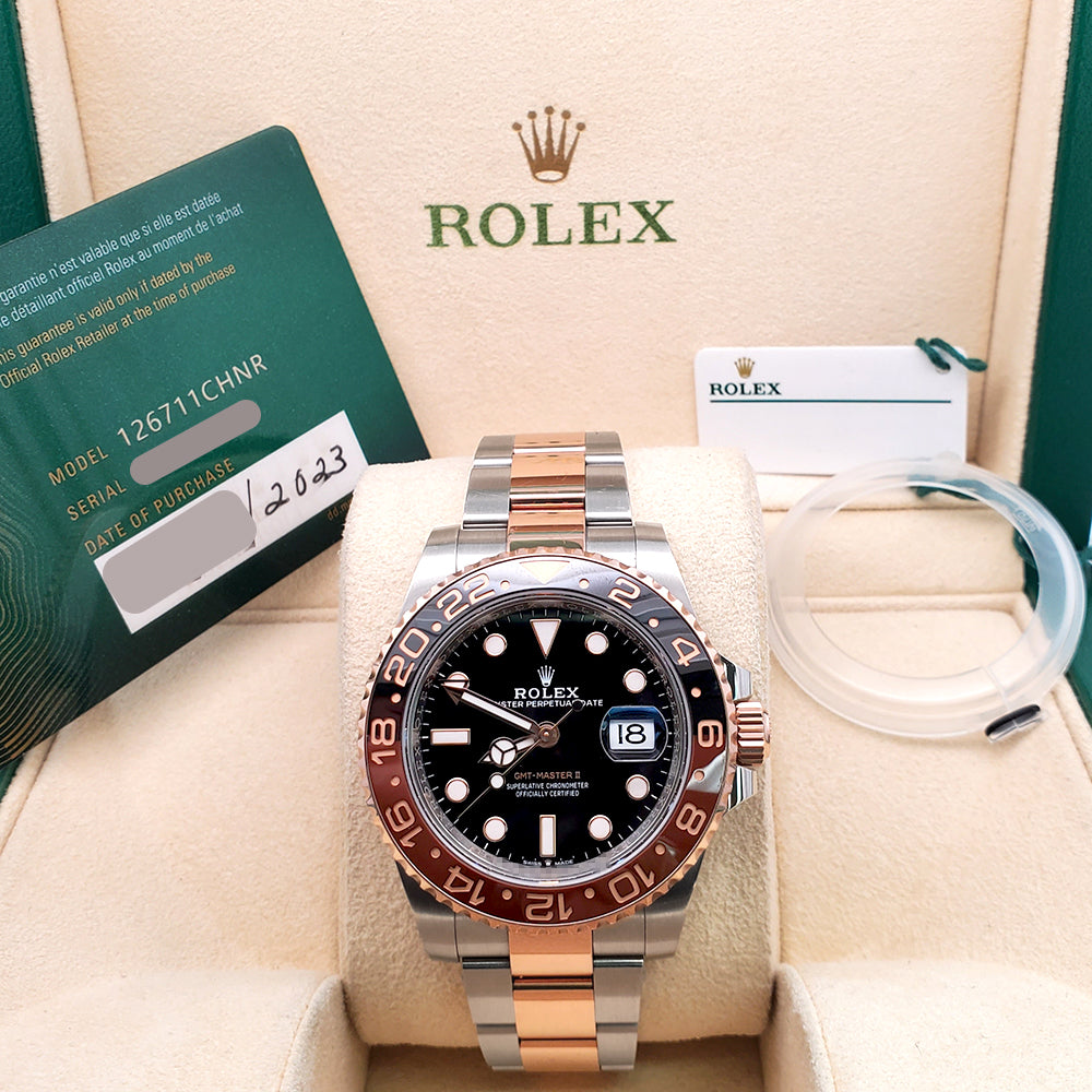 2023 Rolex Rootbeer GMT-Master II 2-Tone Rose Gold/Steel 40mm Watch 126711CHNR Box/Papers/Tag