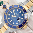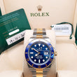 Bold and iconic — 2023 Rolex Submariner Date 41mm with blue dial in 2-tone gold. Box, papers, tag included.