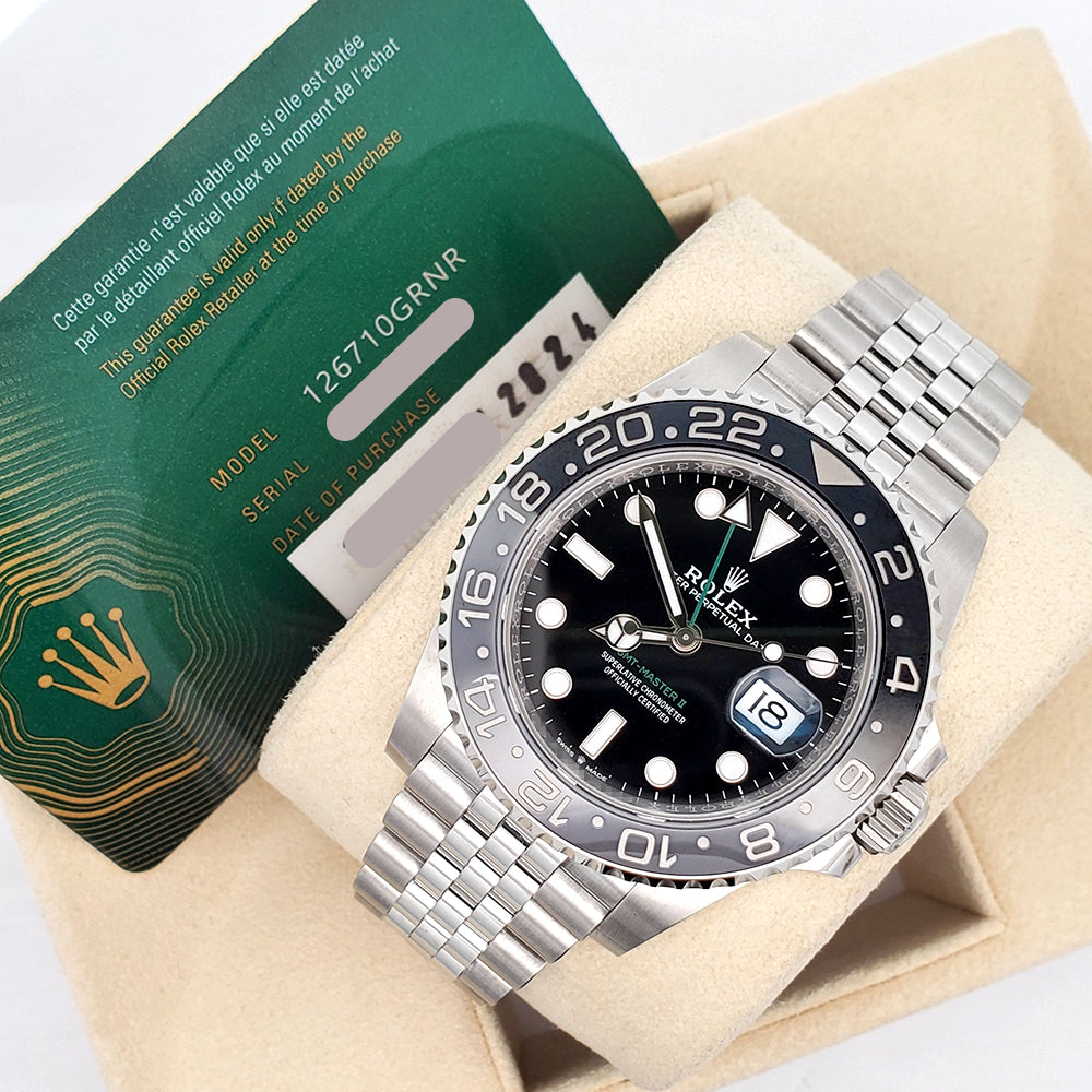 2024 Rolex GMT Master II Black Gray Bruce Wayne Jubilee Steel 40mm Watch 126710GRNR Box Papers