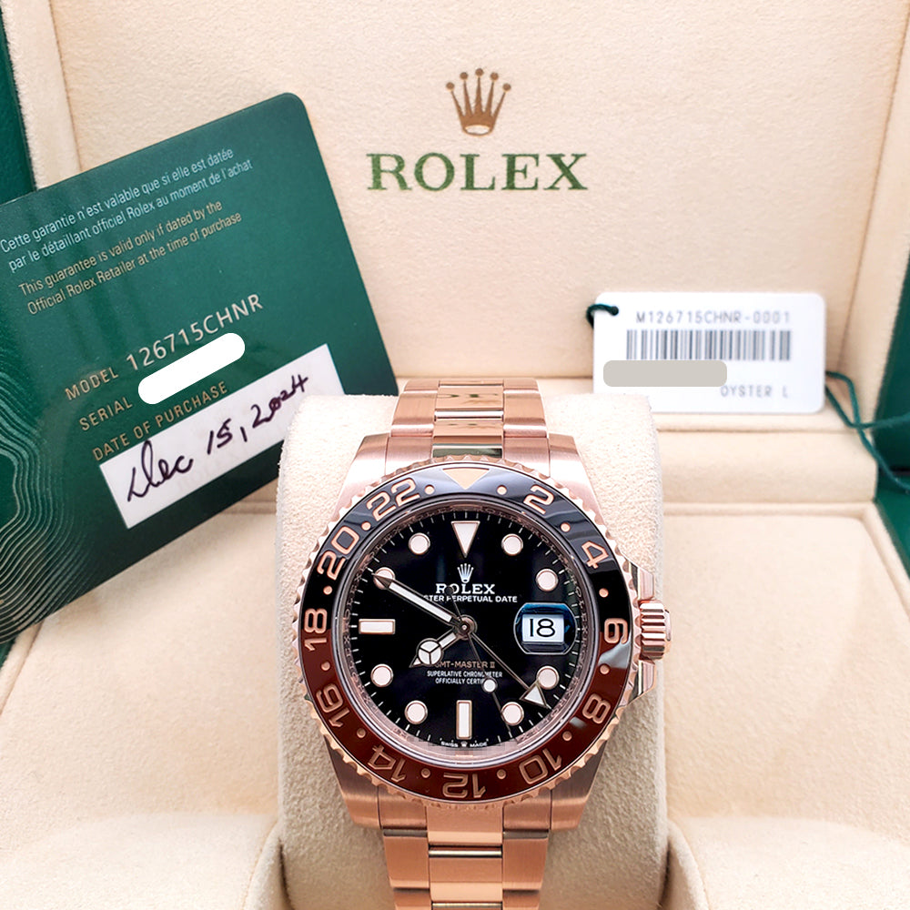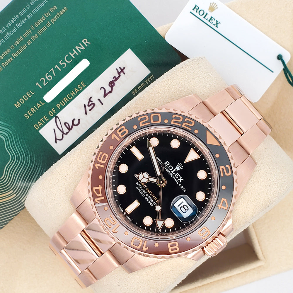2024 Rolex GMT-Master II Rootbeer 126715CHNR Rose Gold Watch Box/Papers/Tag