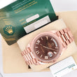 Prestigious refinement 2024 Rolex Day-Date 40mm 228235 in solid rose gold with chocolate Roman dial. Complete with box, papers, and tag, embodying the essence of timeless luxury.