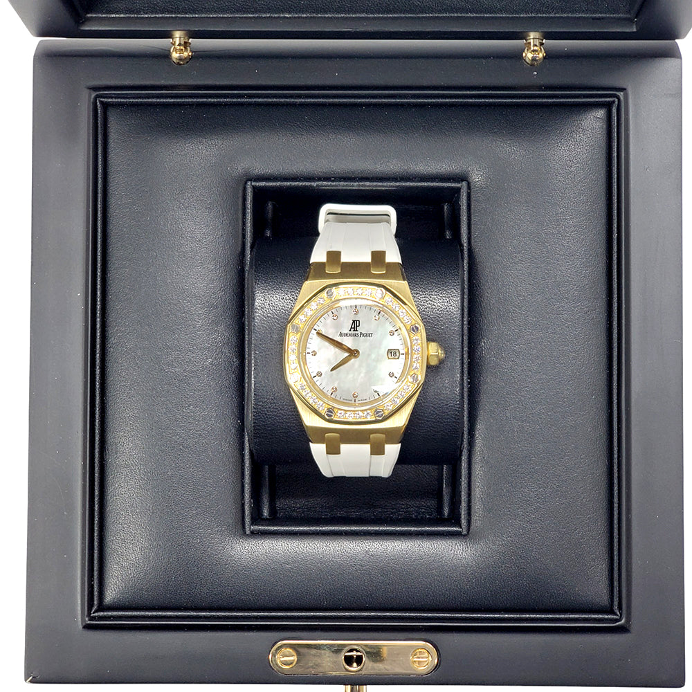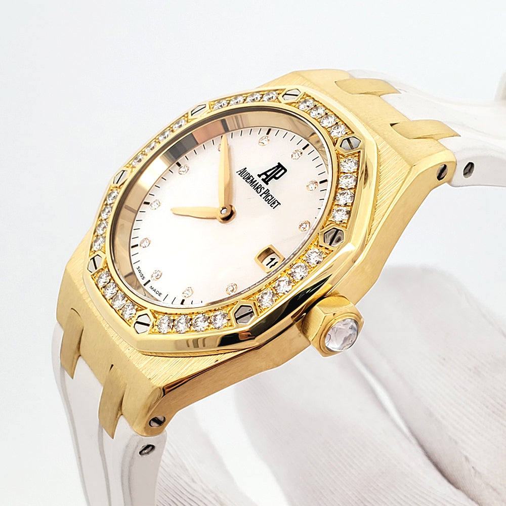 Audemars Piguet Royal Oak Lady Yellow Gold Factory White MOP Diamond Dial/Bezel 33mm Watch, Ref 67601BA.ZZ.D012CR.03.