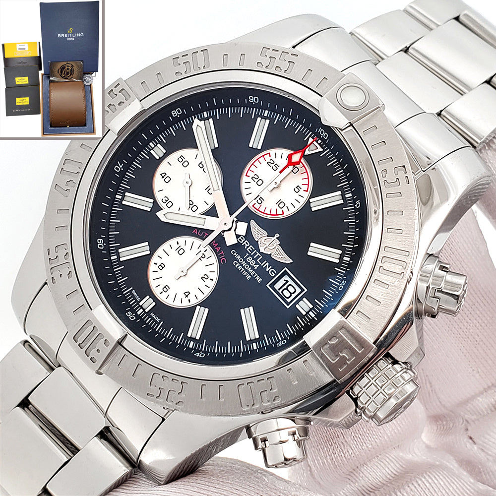Breitling Super Avenger II Chronograph Black Index Steel 48mm Watch A13371 Box Papers