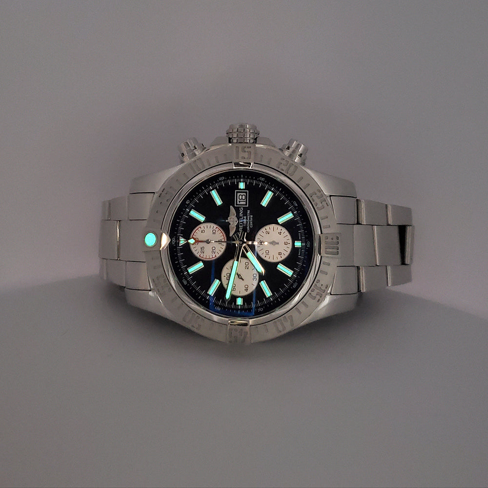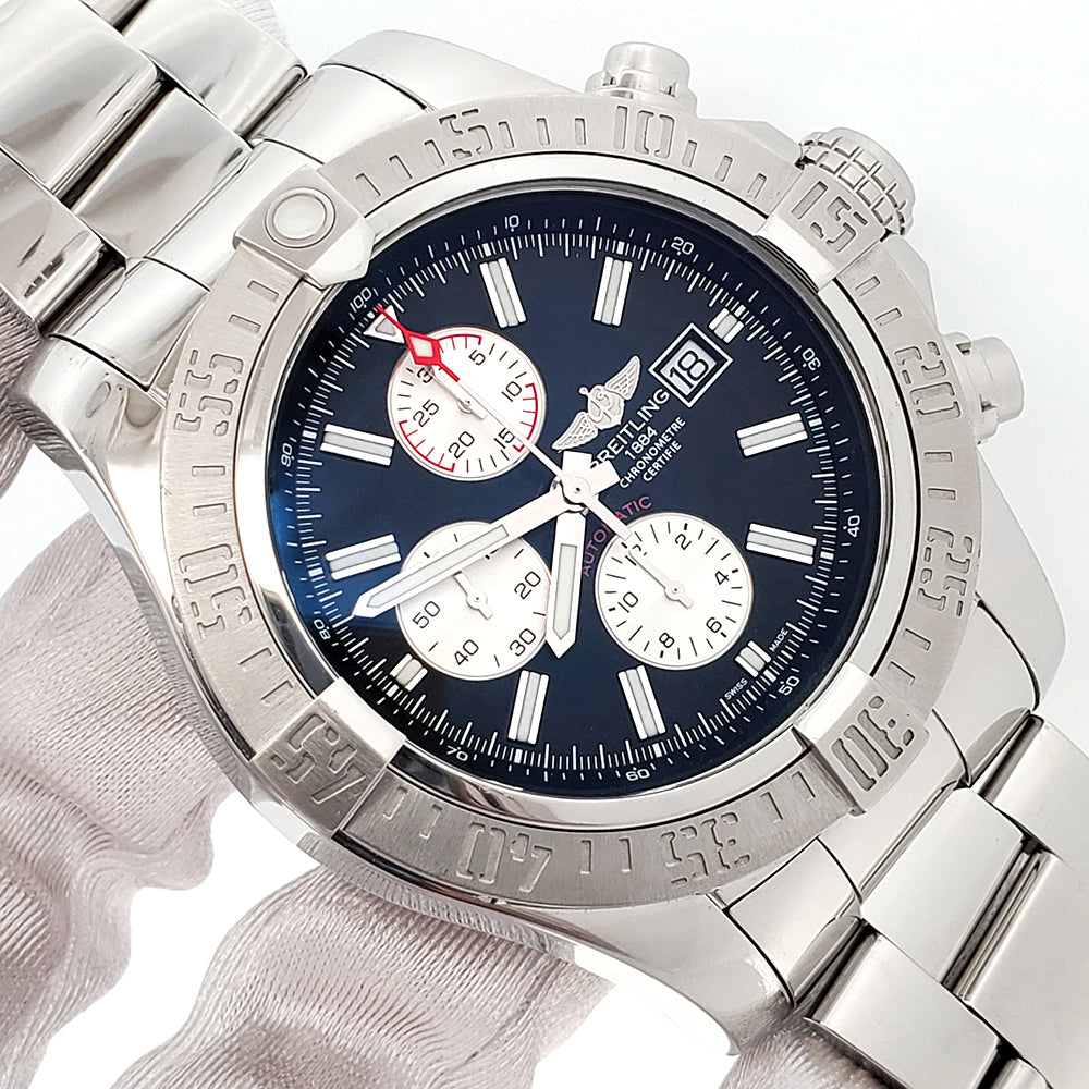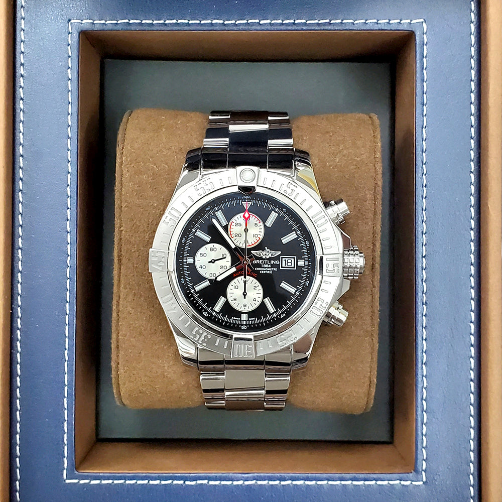Breitling Super Avenger II Chronograph Black Index Steel 48mm Watch, Ref A13371.