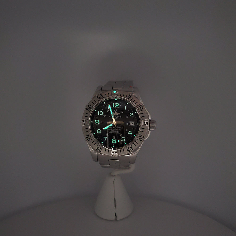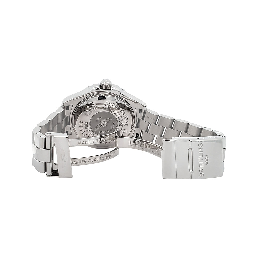 This Breitling Superocean Steelfish 42 mm A17360 features a black Arabic dial, steel case, 1500 m water resistance—bold dive performance.