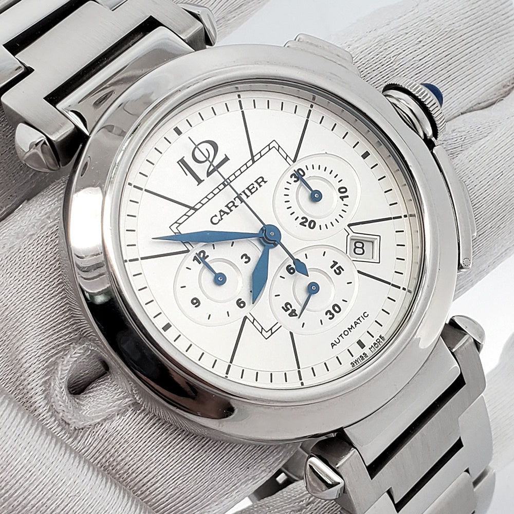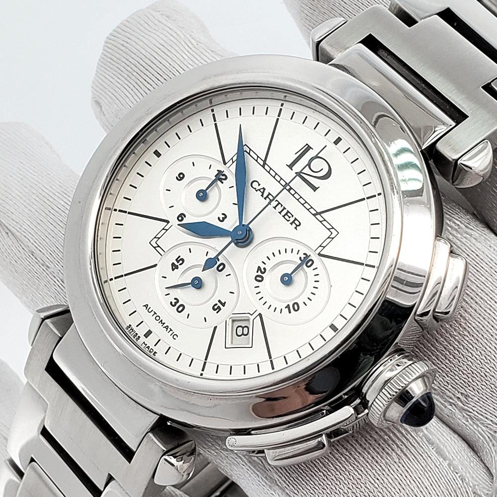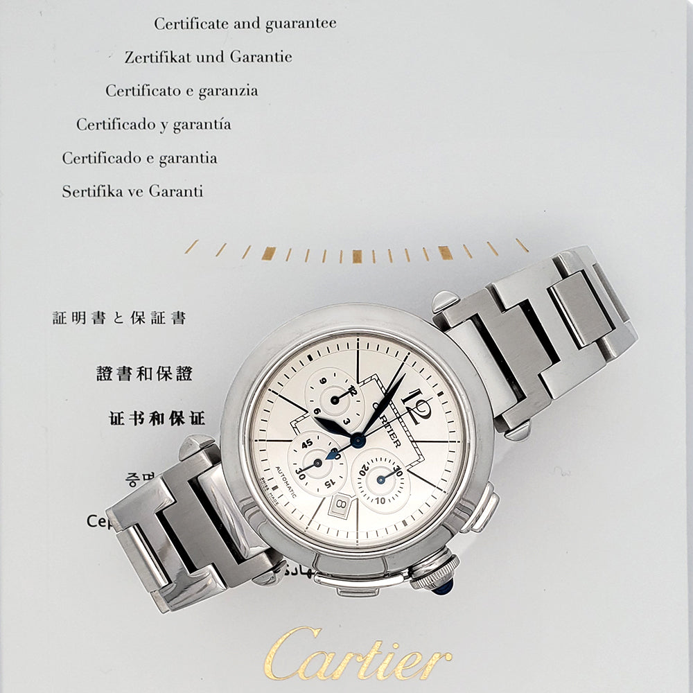 Cartier Pasha 42mm Chronograph Steel Mens Watch W31085M7/2860 Papers