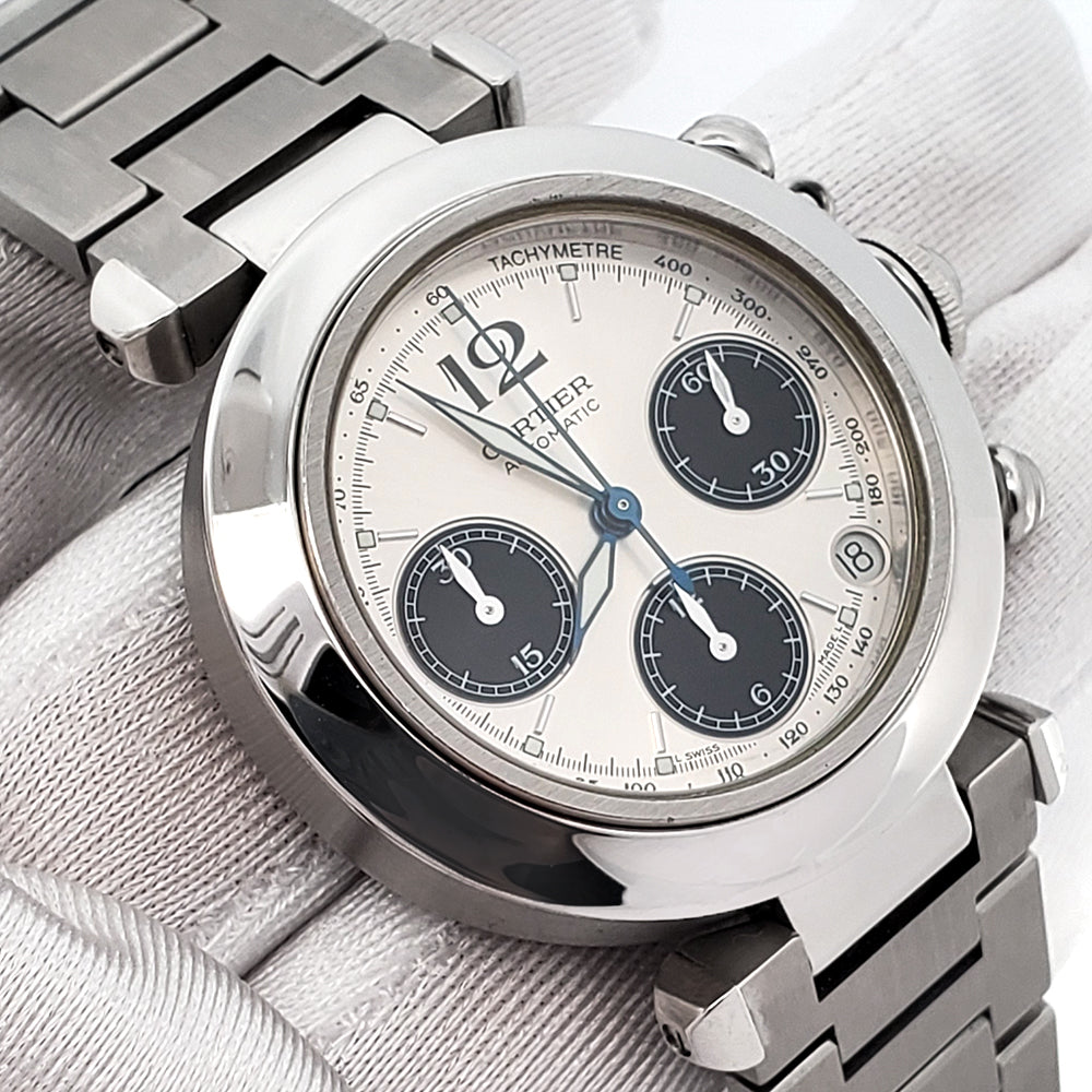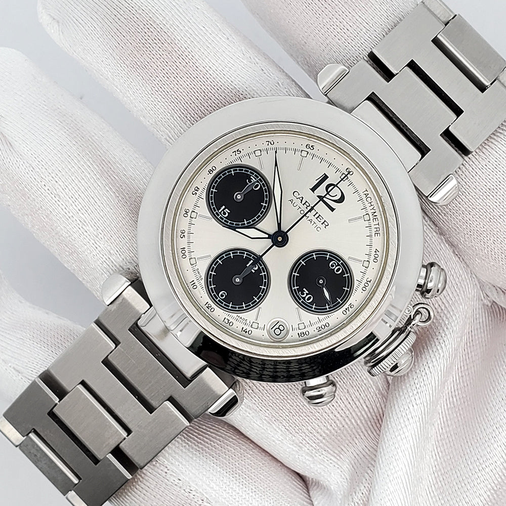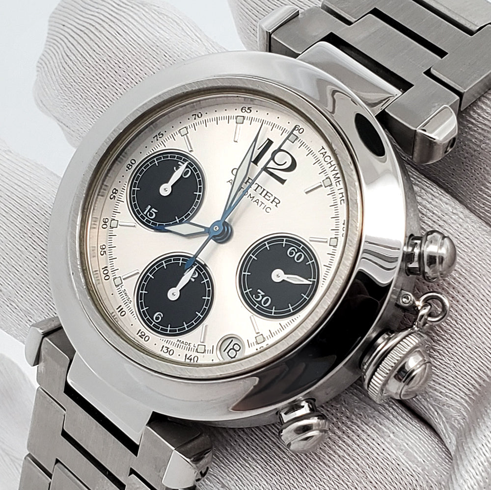 Cartier Pasha C Big Date 36mm Silver Panda Dial Steel Watch, Ref 2412 W31048M7.