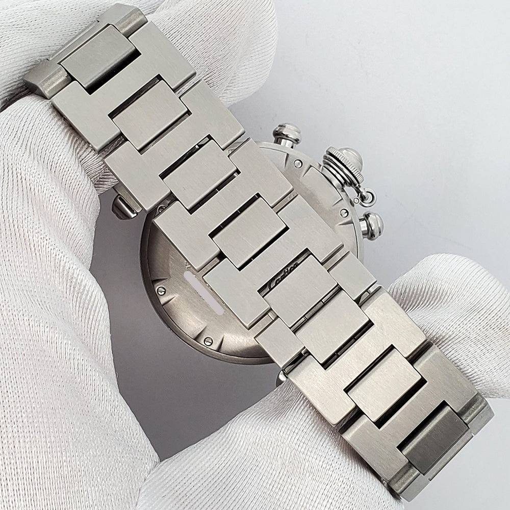 Cartier Pasha C 36mm Silver Panda Dial Chronograph Steel W31048M7 Watch Box Papers