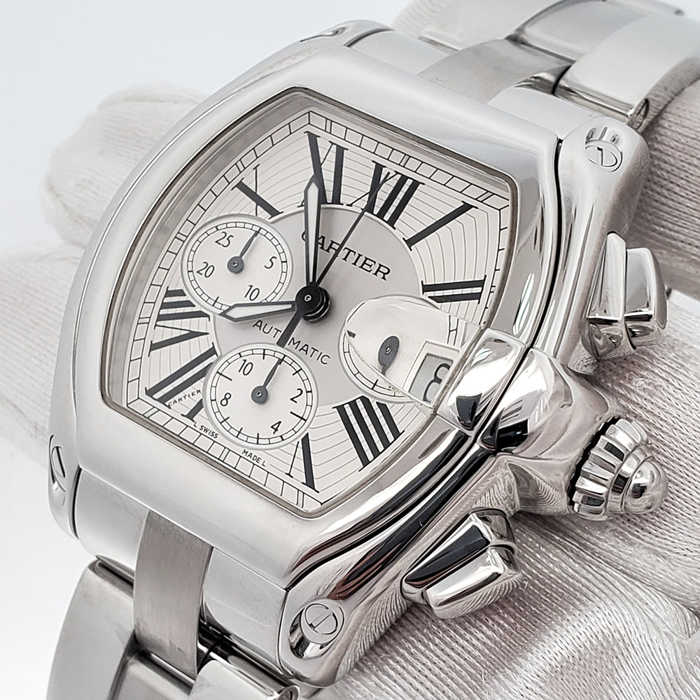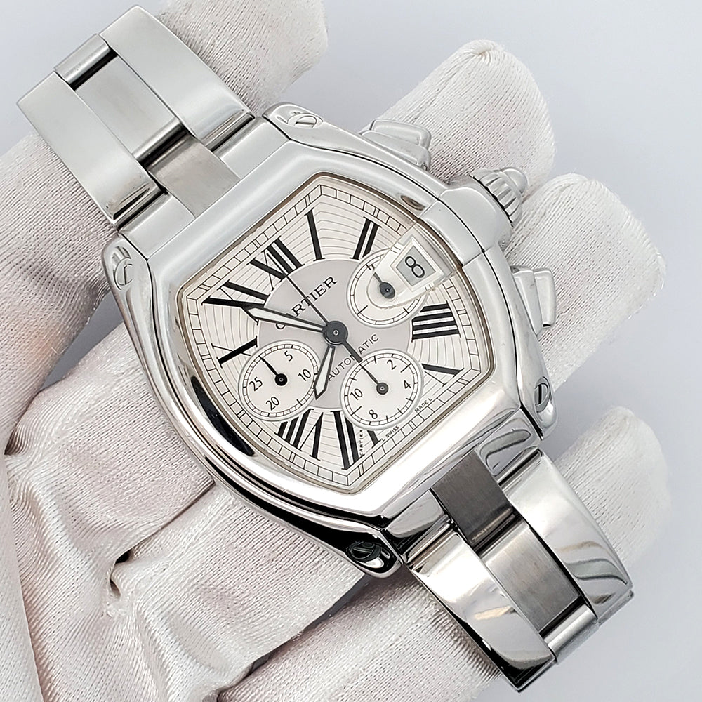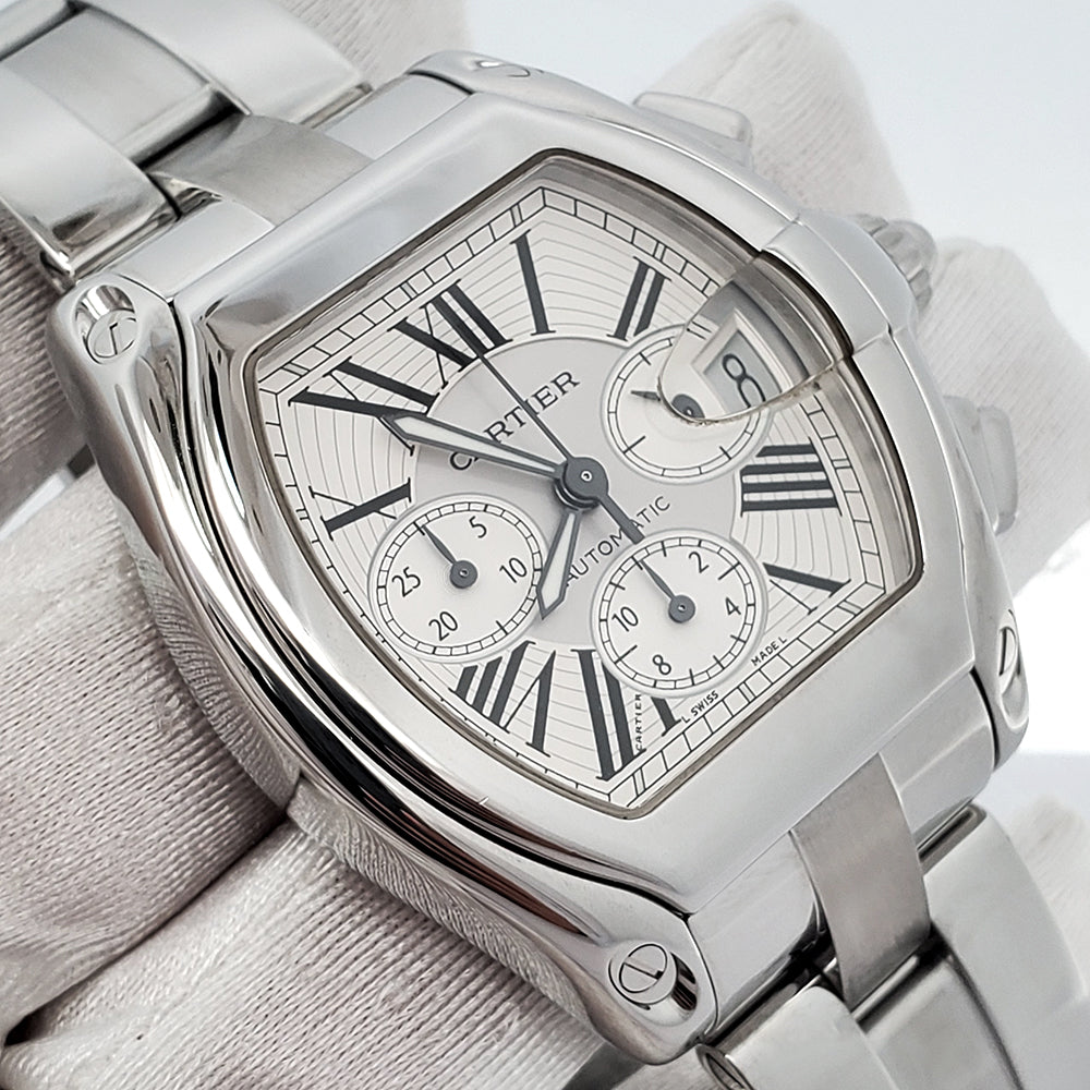 Cartier Roadster XL Chronograph 43mm Silver Roman Steel Watch, Ref W62019X6 2618.