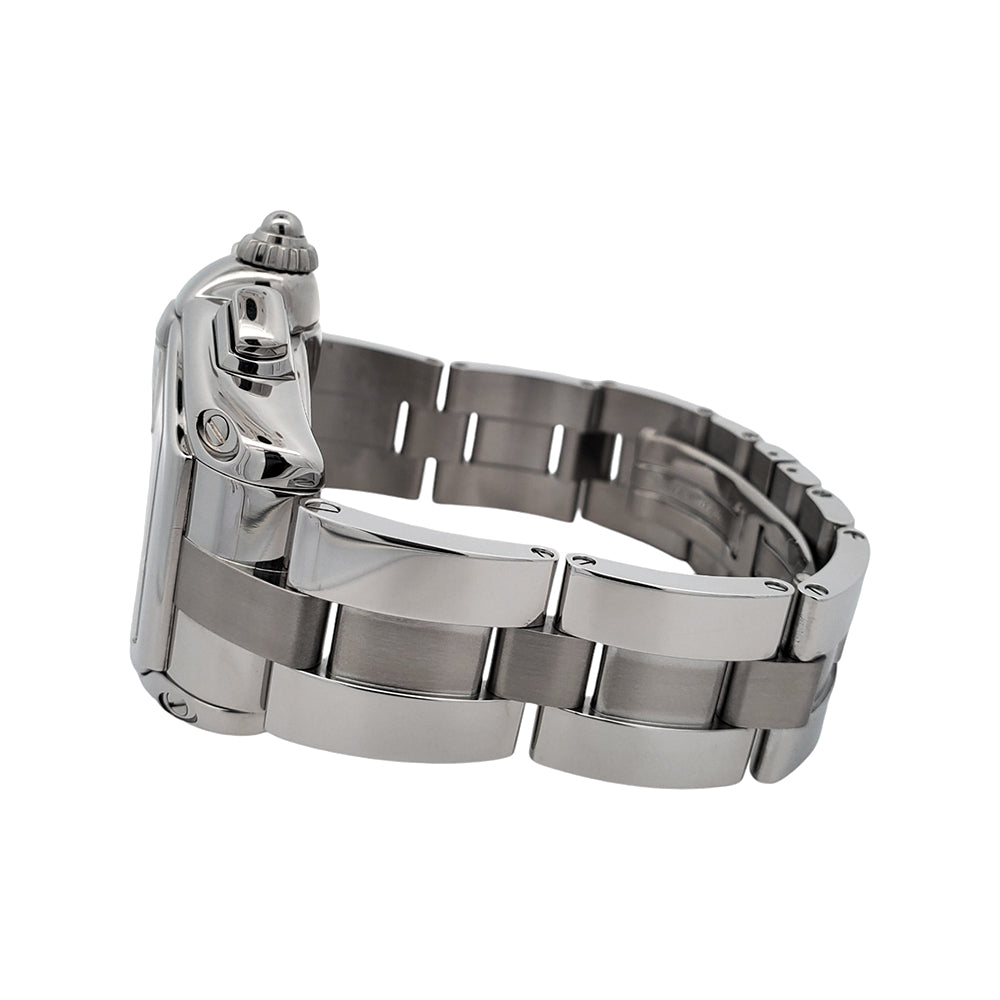 Bold and unmistakably stylish, the Cartier Roadster XL Chronograph 43mm features a silver Roman dial and polished steel case. A fusion of sporty performance and timeless design, this standout timepiece commands attention with classic Cartier sophistication.