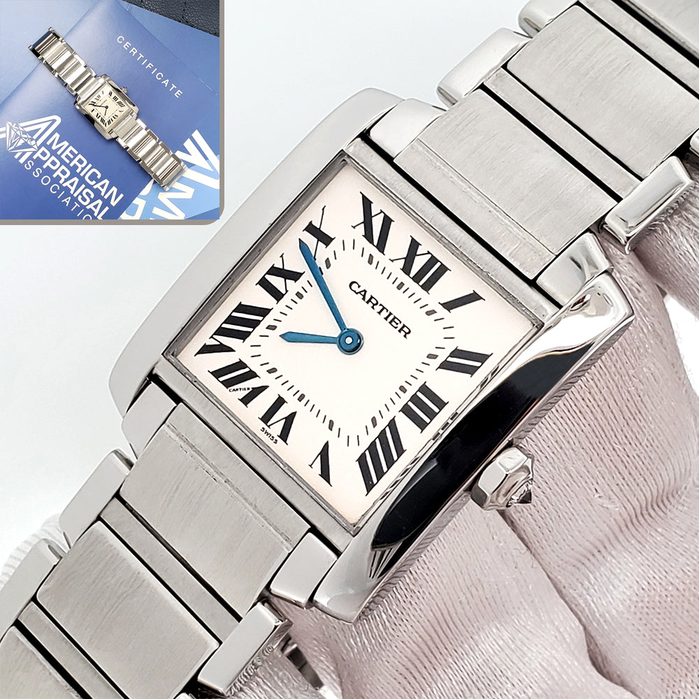Let’s make a deal! Up for sale is a Cartier Tank Française W51003Q3 25mm steel case, off-white Roman dial, timeless quartz elegance, iconic Cartier design.